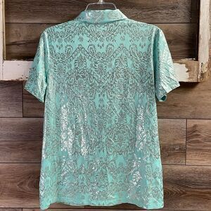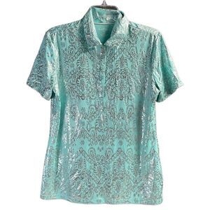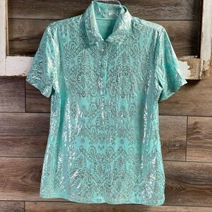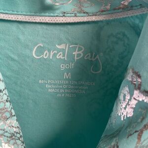 CORAL BAY GOLF Ladies Mint Green Silver Metallic Polo Style Shirt Size Medium