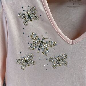 CORAL BAY NWT Ladies Scoop Neck Butterfly Embellished Rhinestones Top Small Pink
