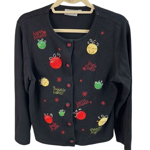 CORAL BAY Women’s Button Up Christmas Holiday Applique Bling Sweater Size Large