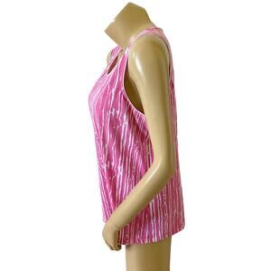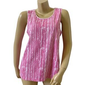 CORAL BAY Womens Petite Size PL Sleeveless Pink White Striped Tank Top Shirt
