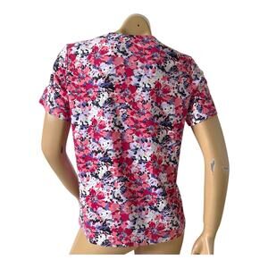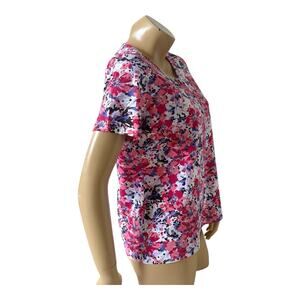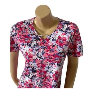 CORAL BAY Womens Petite Size PM Short Sleeve Floral Print Keyhole Neck Shirt Top