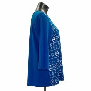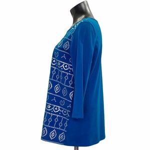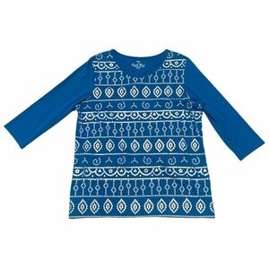 Coral Bay Blue Metallic Graphic Long Sleeve Top Women's Size Large