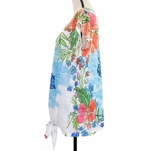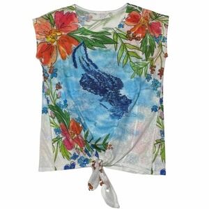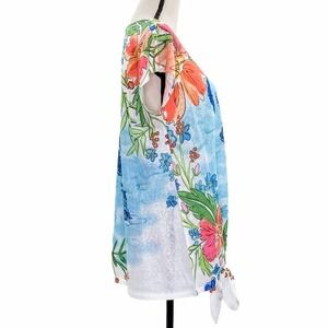 Coral Bay Multicolored Floral Print Short Sleeve Tie Waist Blouse Women's Size XL