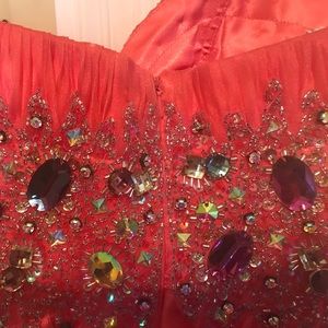 CORAL PROM DRESS short/long w/ RHINESTONES