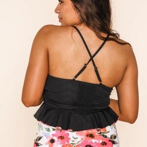 CORAL REEF Black Eyelet Halter Swim Top, BORA, Size Large