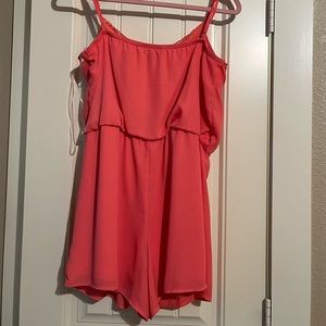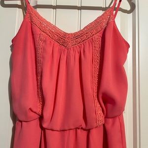 Coral romper with lace detailing