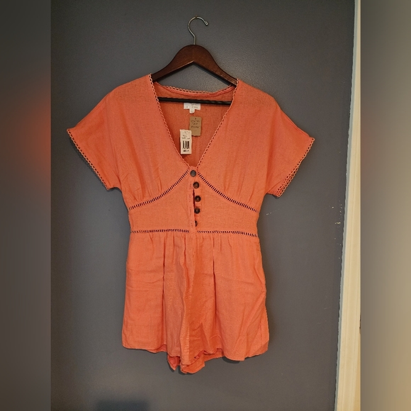 Coral romper with buttons. Key hole stitching designs. New with tags
