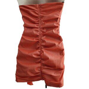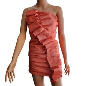 Coral strapless cocktail dress size 3. Built in lining, Zip back closure. Ruched detailing throughout.