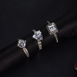 **CORAZON* 3-Pc Silver Rhinestone Fashion Ring Set