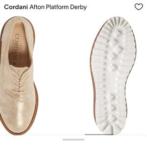 CORDANI Afton Platform Derby Gold Lace Up Loafer EU 41 Almond Toe NWOT Nordstrom