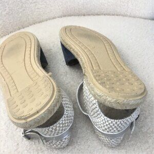Flecks of metallic shimmer illuminate the woven counter of a chic espadrille-style sandal set on an ultra-lightweight and flexible sole for lasting comfort.