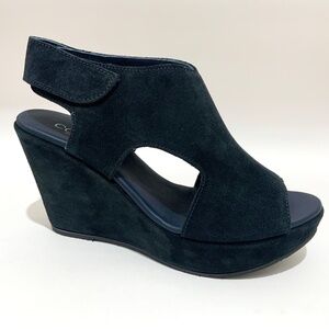 CORDANI REED PLATFORM WEDGE SANDAL BOOTIES Navy Blue SUEDE SLINGBACK Shoes