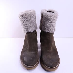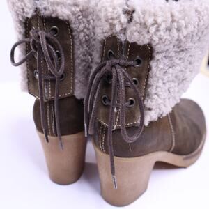 CORDANI Sherpa Suede Ankle Boot Taupe Lace Up Heeled Booties Women's 36/US 5.5
