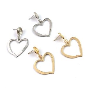 **CORDELIA* Silver Hollow Heart-Shaped Dangle Earrings