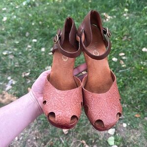 CORDERO Stylish Brown Peep-Toe Heels with Ankle Strap