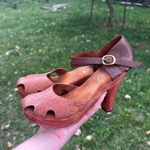 Elevate your look with these chic brown peep-toe heels. Featuring a comfortable ankle strap, they are perfect for any occasion.