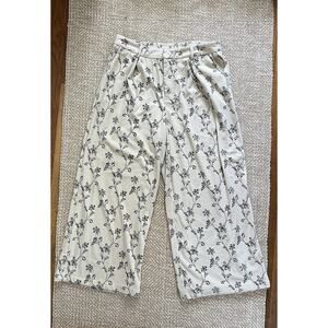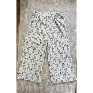 CORDUROY FLORAL MIDDLE WAIST WIDE LEG TROUSERS CURVE & PLUS OXL