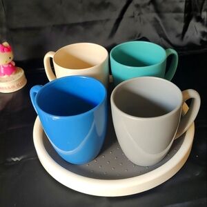 CORELLE MUGS. SET of FOUR in cream, blue, torquois, and gray. 11 oz. in mint condition. Add a classic touch to your coffee enjoyment!