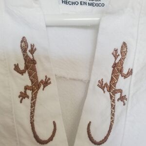 - Embroidered gecko detail