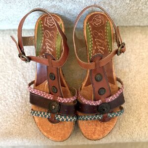 CORKYS Elite Atlantic Colorful Hand-Painted T-Strap Wedge Sandals. Women's Size 10. Excellent condition. Smoke free, dog friendly home.