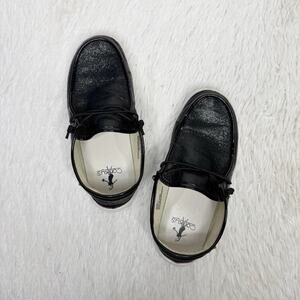 Corkys Kayak black crinkle metallic slip on sneaker shoes women's size 7