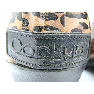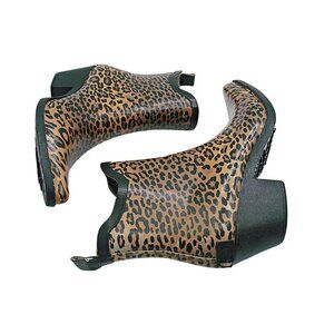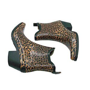 CORKYS Womens/Girls Black Brown Leopard Print Cowgirl Ankle Rainboots Size US 5. Brand: Corkys. Department: Women or Girls. Style: Rain Boots. US Shoe Size: 5. EU Shoe Size: 35. Color: Black, Brown Leopard Print. Upper Material: Rubber. Heel Style: Block. Toe Shape: Pointed Toe. Closure: Pull On. Condition: Preowned in good condition - see all photos and read full description. CORKYS Leopard Print Cowgirl Ankle Rainboots Boots Garden Shoes Size 5. These have flaws/wear - they still function just have cosmetic issues - if you need an extra pair to keep in the car for those rainy days or a pair to wear in the garden or to give to your little one to play in then these are for you. SEE ALL Photos. Back of one boot has a tear in the corkys - the pull-on strap has wear/tear - inside lining is loose on both pairs - these show little wear on bottom. Great extra pair if you need to have a backup! Great pair for you little girl to play in the rain in. I also think these run a little big. Smoke free and Pet free home.