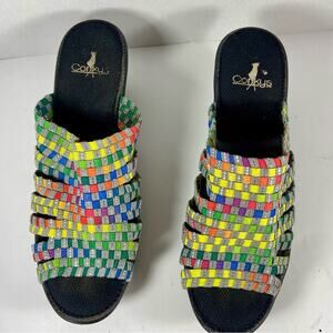 CORKYS rainbow strap sandals comfort shoe slip on elastic stretch arch support