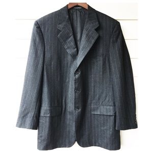 MAKE OFFER! Dual vent. Charcoal gray with awesome chalk pinstripes. One of Italy's top sportcoat brands, which means one of the world's top sportcoat brands. Superb super 110's extra fine merino 100% wool. In excellent condition. MADE IN ITALY.