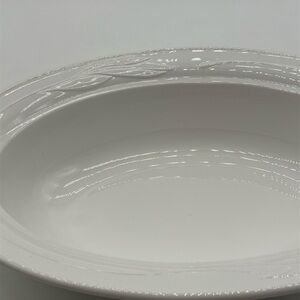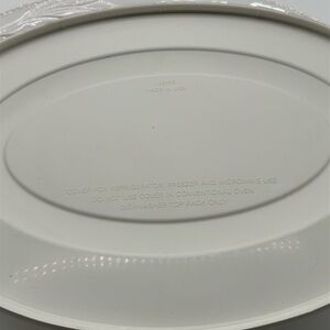 This Corning Ware Casual Elegance serving dish is an original vintage 2 Qt casserole dish made of glossy white Pyroceram. It features an oval shape with a flat bottom, a lid, and is easy to clean and dishwasher safe. With a capacity of 2 quarts, it measures 14 inches in length, 10 inches in width, and 3 inches in depth. Made in the United States, it is a contemporary piece from the Corning Ware Casual Elegance product line.