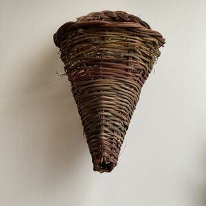 NATURAL WICKER CORNUCOPIA HORN BASKET BOHO THANKSGIVING AUTUMN FALL DÉCOR LIKE NEW (Used once to hold the arrangement)