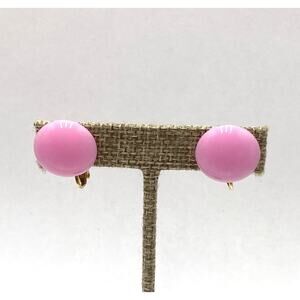 CORO Clips Earrings Pink Lucite Vintage Plastic Dome Gold Tone
