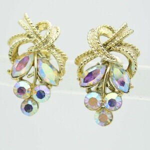 CORO Gold Tone Clear Purple AB Rhinestone Flower