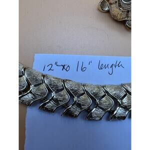 CORO TEXTURED FEATHER LEAF GOLD TONE MCM PANELED LINK NECKLACE BRACELET SET