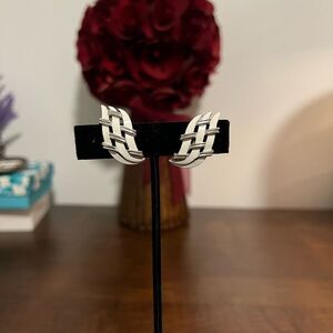 CORO VINTAGE CRISCROSS CLIP EARRINGS ENAMEL