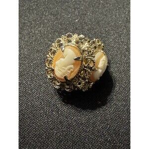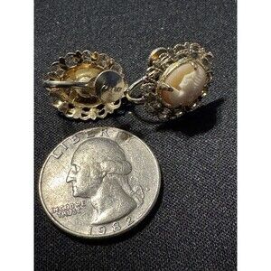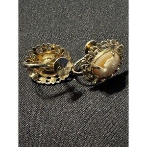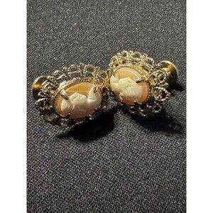 CORO Vintage Carved Shell Cameo Silver Tone Screw Back Earring
