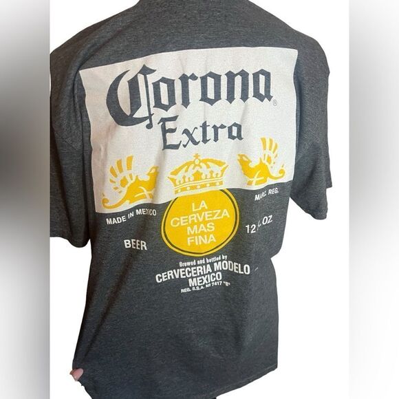 CORONA EXTRA BEER TSHIRT GRAY GRAPHIC PRINT SHORT SLEEVE CREWNECK LARGE