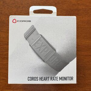 This is a COROS Heart Rate Monitor that I've used only a few times. There's one dirt smudge on the band that I could probably just wash off real quick, but I am always nervous getting water near electronics. Anyways, it works great - I just...never use it. I really thought I was gonna be a HR monitoring girl. But turns out my heart rate is just always SKY HIGH, which I can tell by the way it feels as though my heart is going to jump out of my chest at any moment, so all an electronic thing does is increase my anxiety about it. Wheeee!