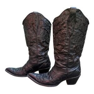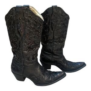 CORRAL BLACK GOAT SEQUIN INLAY WOMENS 8 M WESTERN COWBOY BOOTS A1070 SNIP TOE