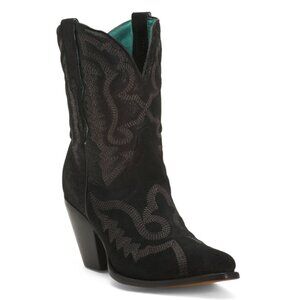 stacked block heel, lightly padded footbed, leather lining, western embroidered design