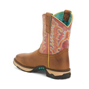 pull on loops, handcrafted, arch support, oil and slip resistant outsole, embroidered detail, polycarbonate safety toe, water resistant, western design, comfort footbed