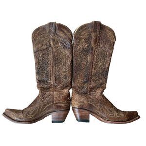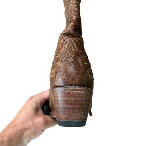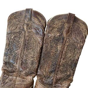 CORRAL LADIES VINTAGE BROWN ON BROWN TALL EAGLE OVERLAY BOOTS R2295 SZ 7.5 M