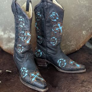 CORRAL R2482 Espresso brown & turquoise inlay crosses & roses cowgirl boots sz 7