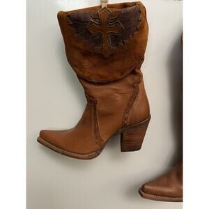 CORRAL Women's 6.5 Cross Lizard Cuffed Pointed Toe Cowgirl Boots C2213 Brown