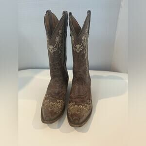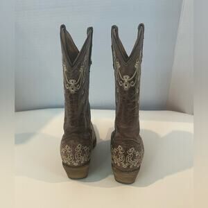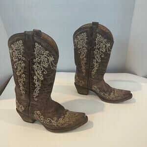 CORRAL Young Teens Western Brown Leather Embroidered Pull On Cowgirl Boot 2.5