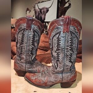 CORRAL chestnut brown & distressed gray sequin eagle inlay cowgirl boots 7.5
