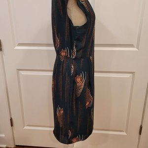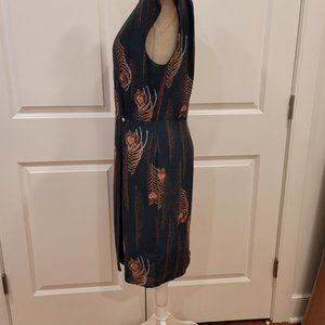 Multicolor semi-wrap dress 35% silk, 65% Tencil, lining 100% polyester, size 10. This dress is adorable!!!!