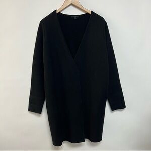 COS 100% Boiled Wool Black Cardigan Sweater Longline Open Concept Small
