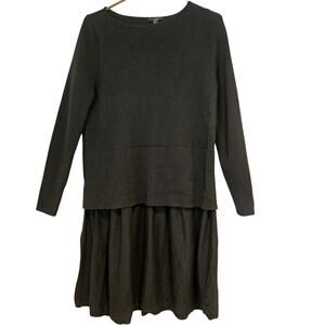 COS 100% Wool Black Knit Layered Tiered Long Sleeve Sweater Dress, Size Medium