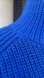 Features a chunky knit and a vibrant royal blue color.