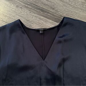 COS 100% silk navy v neck top